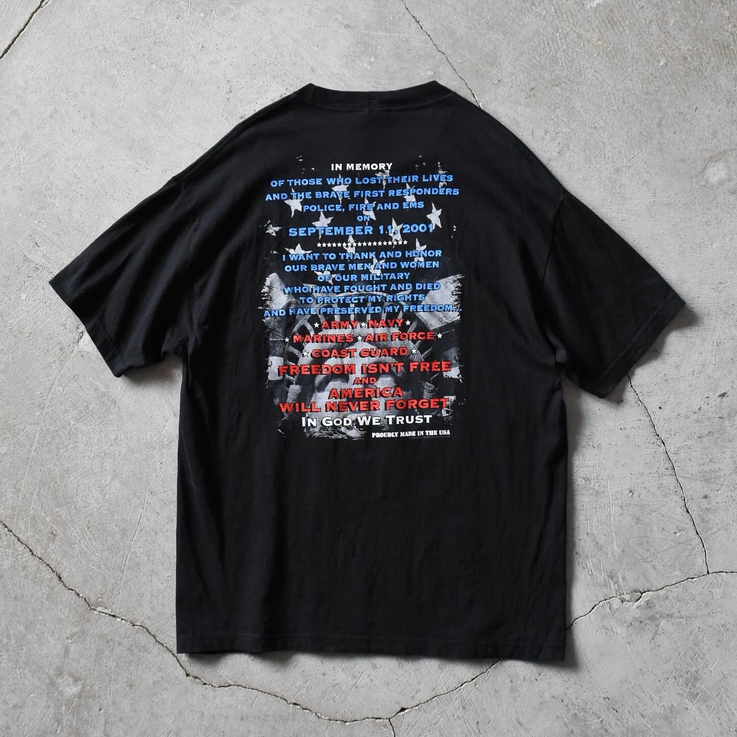 アメリカを襲った史上最悪のテロ事件「9.11」のメモリアルTシャツです。