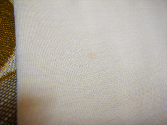 USEDになりますので着用感はございます。身頃は色褪せしておりカラーが生成りに近い感じになっております。左胸・裾に染み、左脇に小さなホツレがございます。
