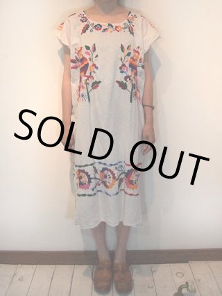 人気のメキシカン刺繍ワンピです。フラワーの刺繍がとてもかわいいです。手縫い刺繍の温もりが良い雰囲気です。