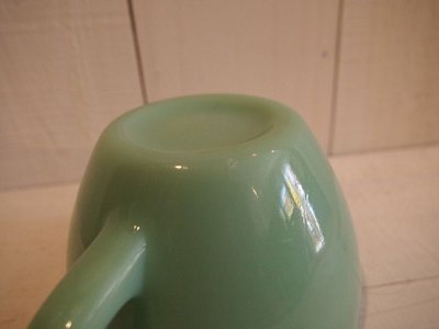 こちらのカラーはジェダイと言うカラーになりますが、ジェダイトはファイヤーキングのジェードカラー(翡翠色)のシリーズのことで、40年代頃のアメリカはオリエンタルブームで中国の高価な宝石である翡翠(ひすい)の色が注目されていたようです。
