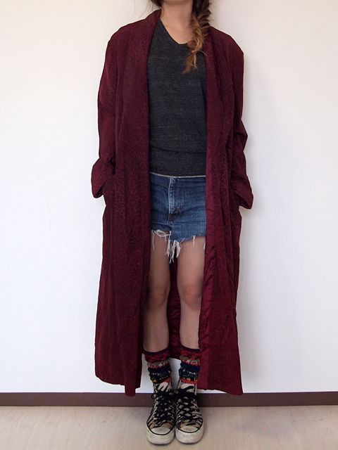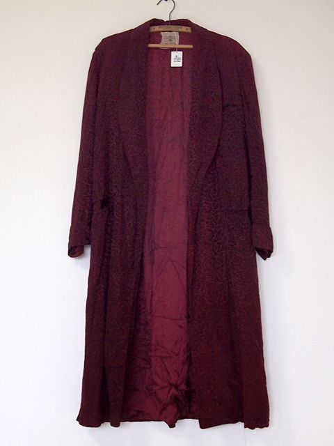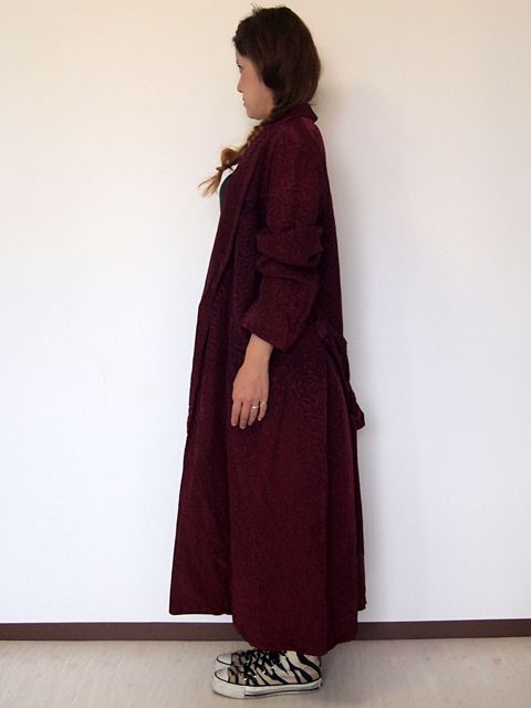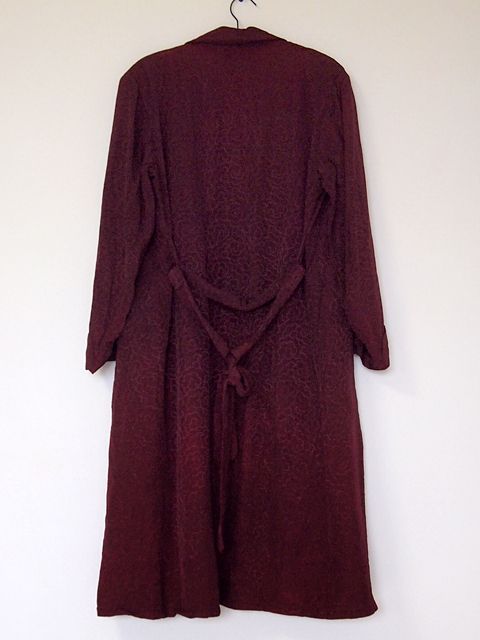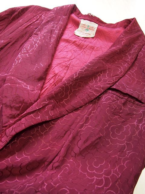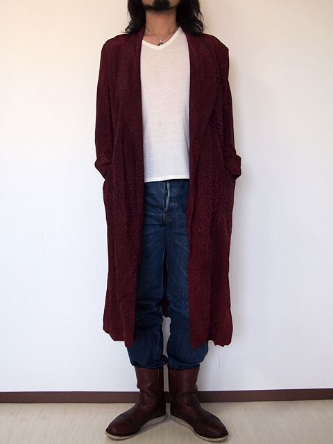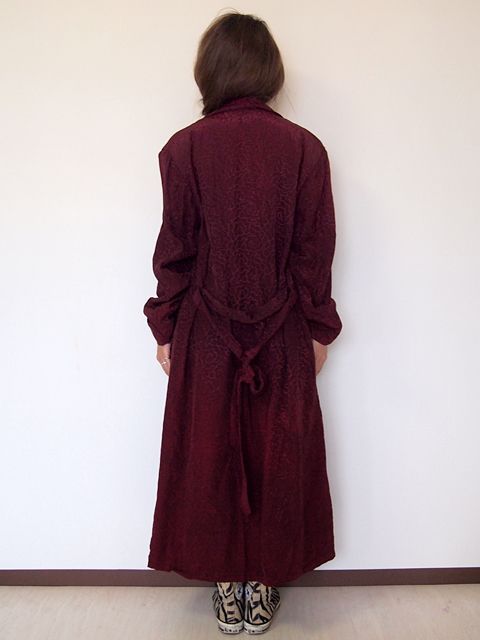 人気のガウンです。変り種のサテン総柄です。バーガンディ単色の柄が雰囲気がありカッコ良いです。