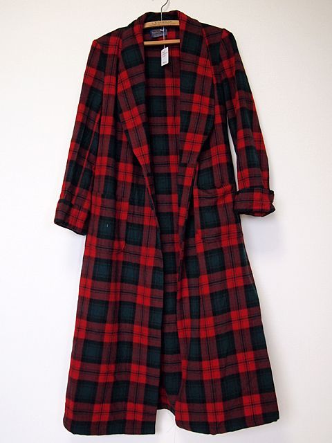 人気のPENDLETONのウールチェックガウンです。素材や縫製などクオリティも高いガウンです。作りやサイズ感的にレディースサイズですが、小柄な男性にも綺麗なシルエットで着用して頂けそうです。PENDLETONのウール製品はとても暖かく室内着としてもオススメです。外出時にもコート感覚で着用して頂けます。