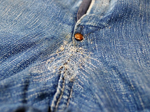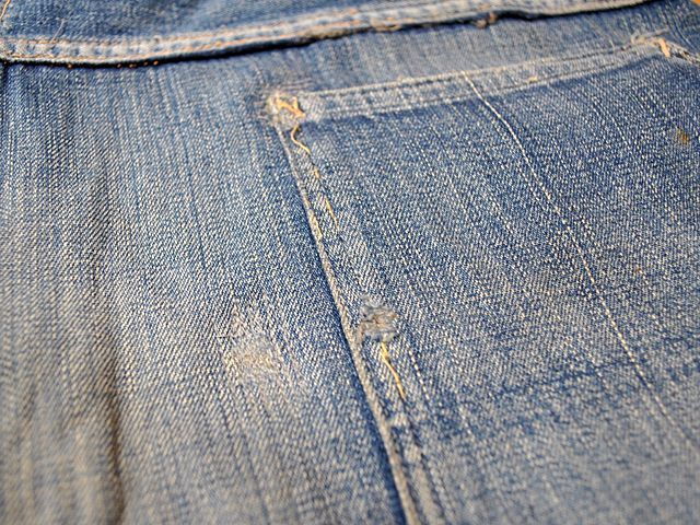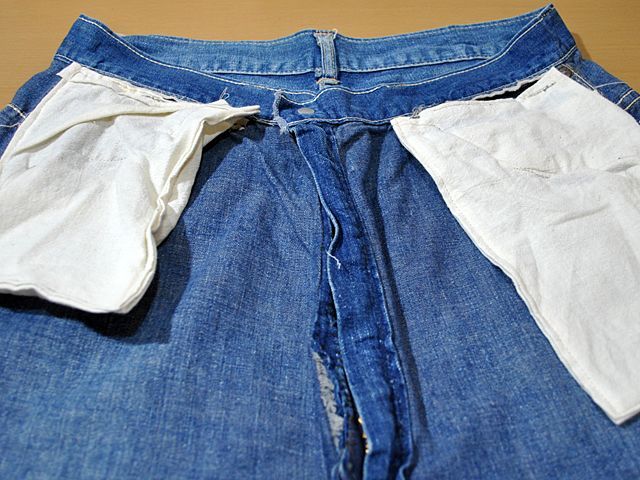 USEDになりますので少々使用感がございます。股・右太もも裏・お尻・ヒップポケット等に若干のリペア・リステッチ跡がございます。ジップのトップ(引手)に若干の歪み、フロントポケット裏地の張替えがございますが、色は比較的濃い目で年代を考慮するとコンディション良いです。USEDの為、気付かない小さな汚れやダメージがある場合がございます。
