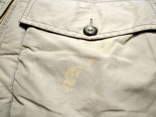 USEDになりますので使用感がございます。左胸・フロント裾・左ポケット・左袖・バック右肩付近に若干の汚れがございますが、コンディションはまずまずです。USEDの為、気付かない小さな汚れやダメージがある場合がございます。
