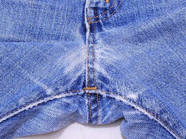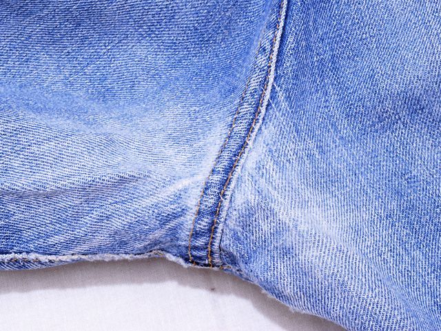 USEDになりますので少々使用感がございます。パッチ欠損、裾にダメージと汚れ、右膝に小さな汚れ、股にリペア跡がございますが、リペアはとても綺麗でコンディションは良いと思います。USEDの為、気付かない小さな汚れやダメージがある場合がございます。
