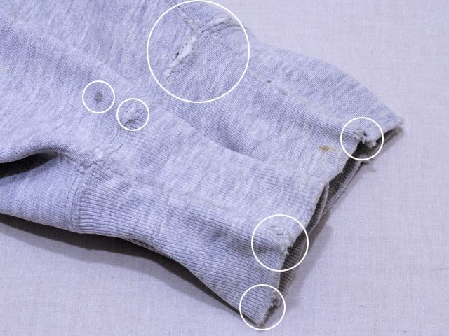 USEDになりますので少々使用感がございます。首周りや袖口にダメージ、袖口やお腹・背中に多少の汚れ、左袖につく目玉に少々剥がれがございますが、コンディションはまずまずです。USEDの為、気付かない小さな汚れやダメージがある場合がございます。