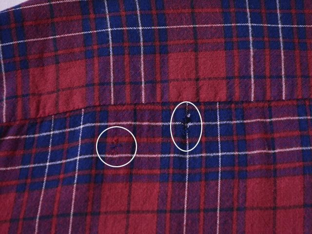 USEDになりますので少々使用感はございます。フロント右裾付近・バックヨーク付近に少々ダメージ、襟付近・バック襟付け根付近に少々ホツレがございますが、コンディションはまずまずです。