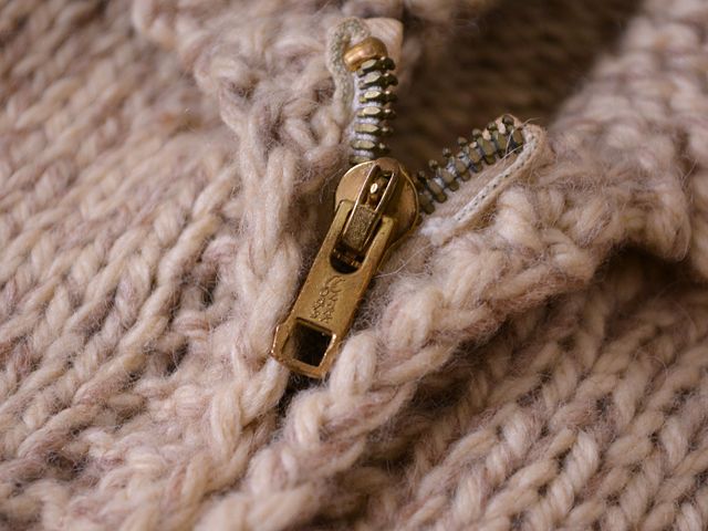 ギュッと目の詰まったずっしりとした肉厚感のあるハンドニットが古さを感じる一枚です。