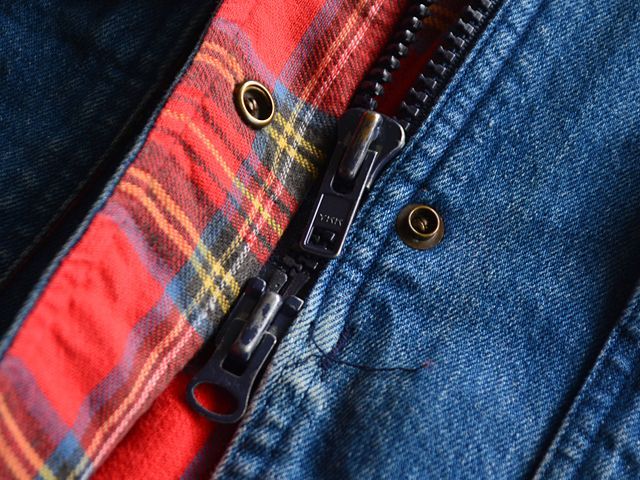 表のデニム同様に裏地のチェックのフランネル地も非常に良い雰囲気です。