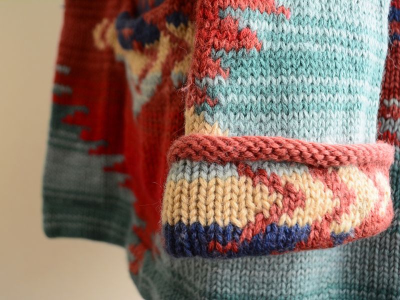 〜90s LAUREN RalphLauren ネイティブ柄ニットガウンです。