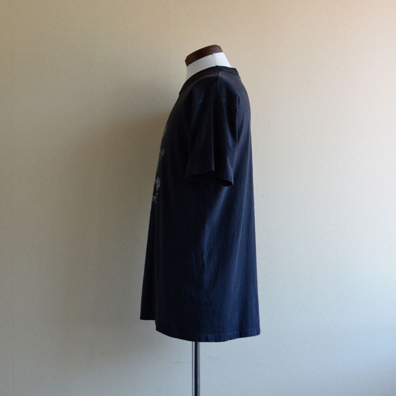 その不気味なデザインや色味は勿論ですが、フロントだけに留まらず右脇腹から背中にまで及ぶプリントもまた珍しく、高い評価を受ける一枚と言えると思います。