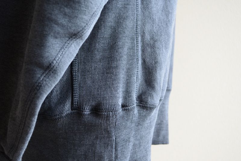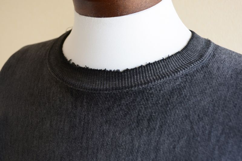 USEDになりますので使用感はございます。ボディには全体的に色褪せ、首周り首リブにダメージ、左肩付近に僅かなホツレ、右袖付け根付近に少々ダメージがございますが、袖リブや裾リブの状態は良く、コンディションはまずまず良好です。