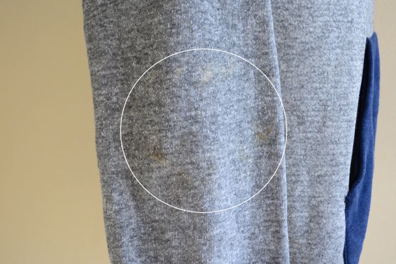 USEDになりますので少々使用感はございます。首元やポケット付け根に少々リステッチによる補修跡、右袖リブ付け根に僅かなホツレ、右袖肘付近に薄っすら汚れがございますが、コンディションはまずまず良好です。