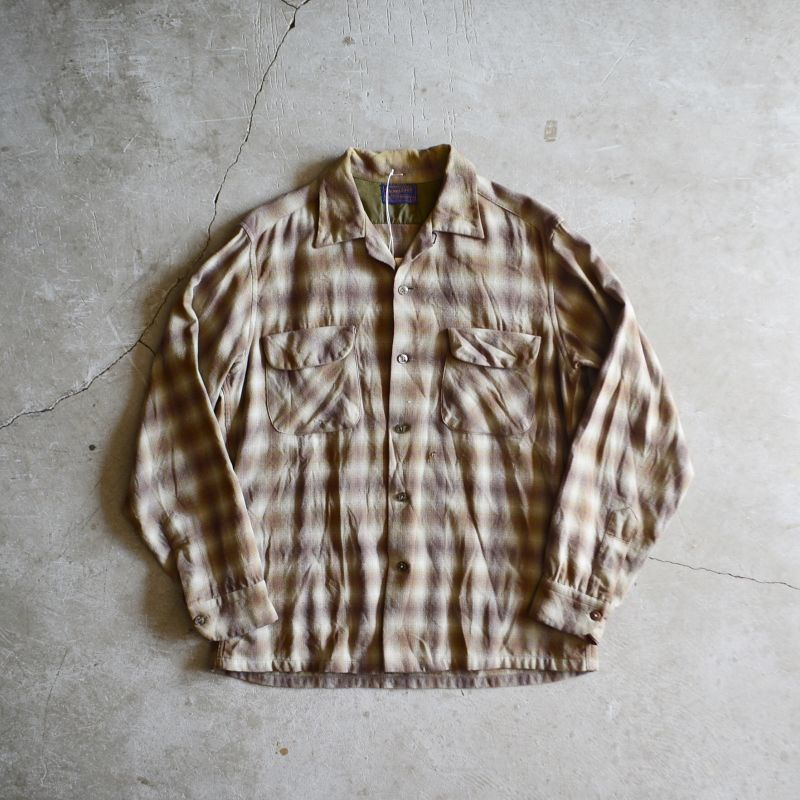 1950s PENDLETON ウールシャツ オンブレーチェック 表記M [E20-11-6]