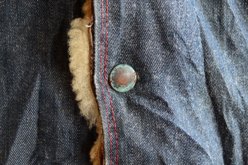 USEDになりますので少々使用感はございます。ボタン表面に少々サビ、袖に僅かにスレ・汚れ、パッチワークムートンのステッチに少々ホツレがあり裏地には画像にあるようなステッチホツレやステッチ切れによるダメージがございますが、コンディションはまずまず良好です。