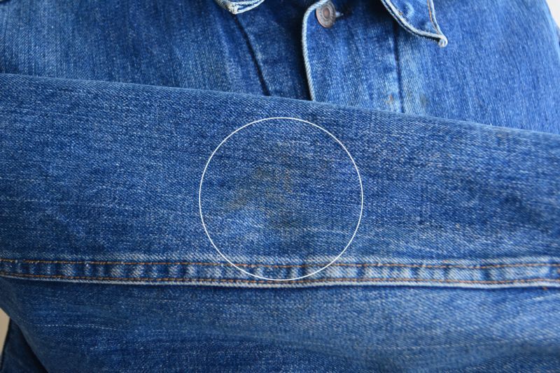 USEDになりますので使用感はございます。襟に少々汚れが、左胸上付近やフロント裾・右袖に僅かな汚れ、左袖縫い合わせ部分に僅かなホツレ、同じく左袖袖口付近に少々ダメージ、裏地の袖部分に少々ダメージがございますがコンディションはまずまず良好です。
