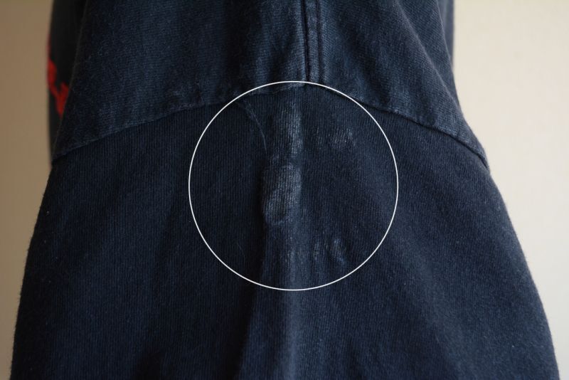 USEDになりますので少々使用感はございます。多少のプリント剥がれ、左肩とフロントお腹・裾に汚れが見られますが、コンディションはまずまずです。