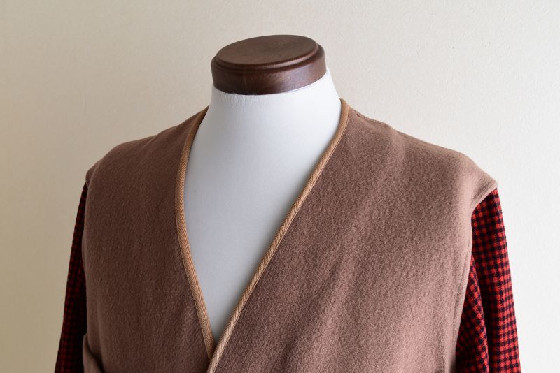 身頃はベージュより気持ち濃いキャメルに近い色味のウールメルトン地でしっかりとした生地感です。