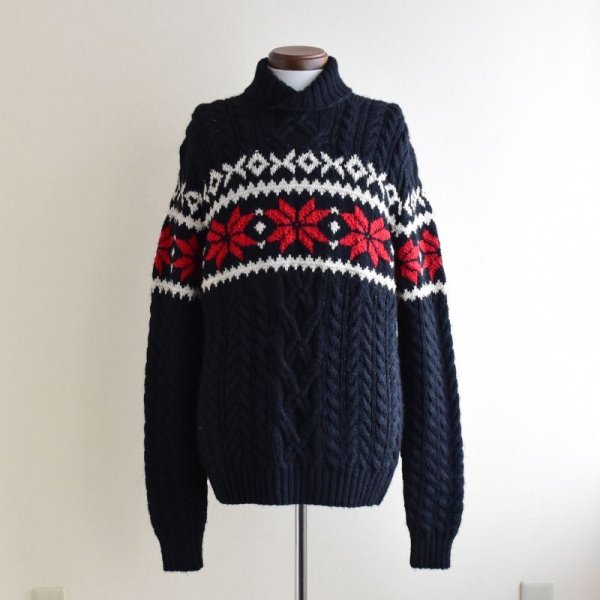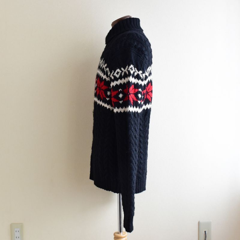 ショールカラー×雪柄×ケーブル編みと言う非常に魅力的なウールセーターです。