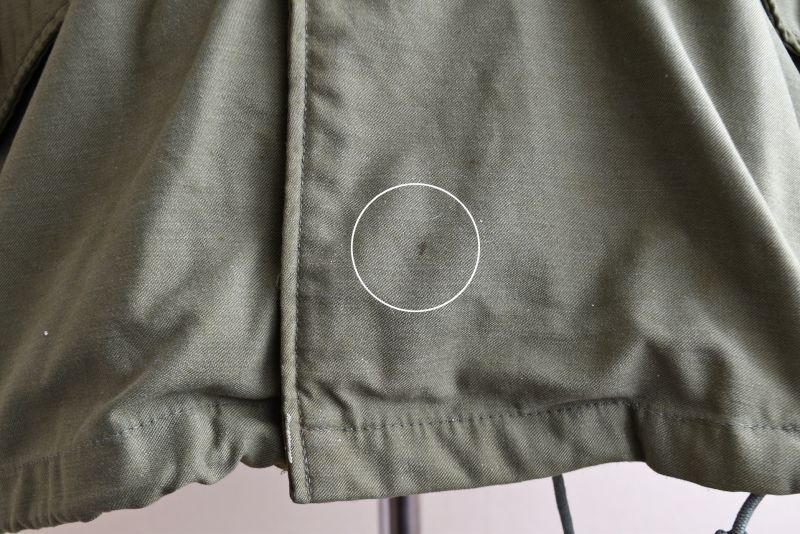 USEDになりますので少々使用感はございます。左袖と裾付近・右裾ポケットフラップに僅かな汚れ、両袖口に青っぽい小さな汚れ、右袖口に小さなダメージ、裏地に僅かなダメージが見られますが、コンディションはまずまず良好です。
