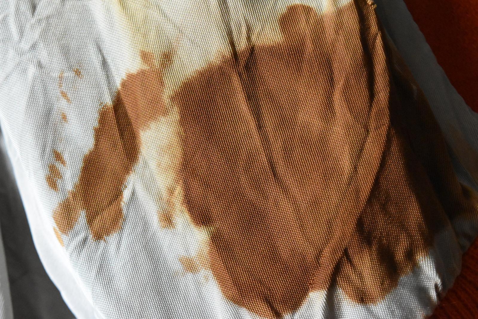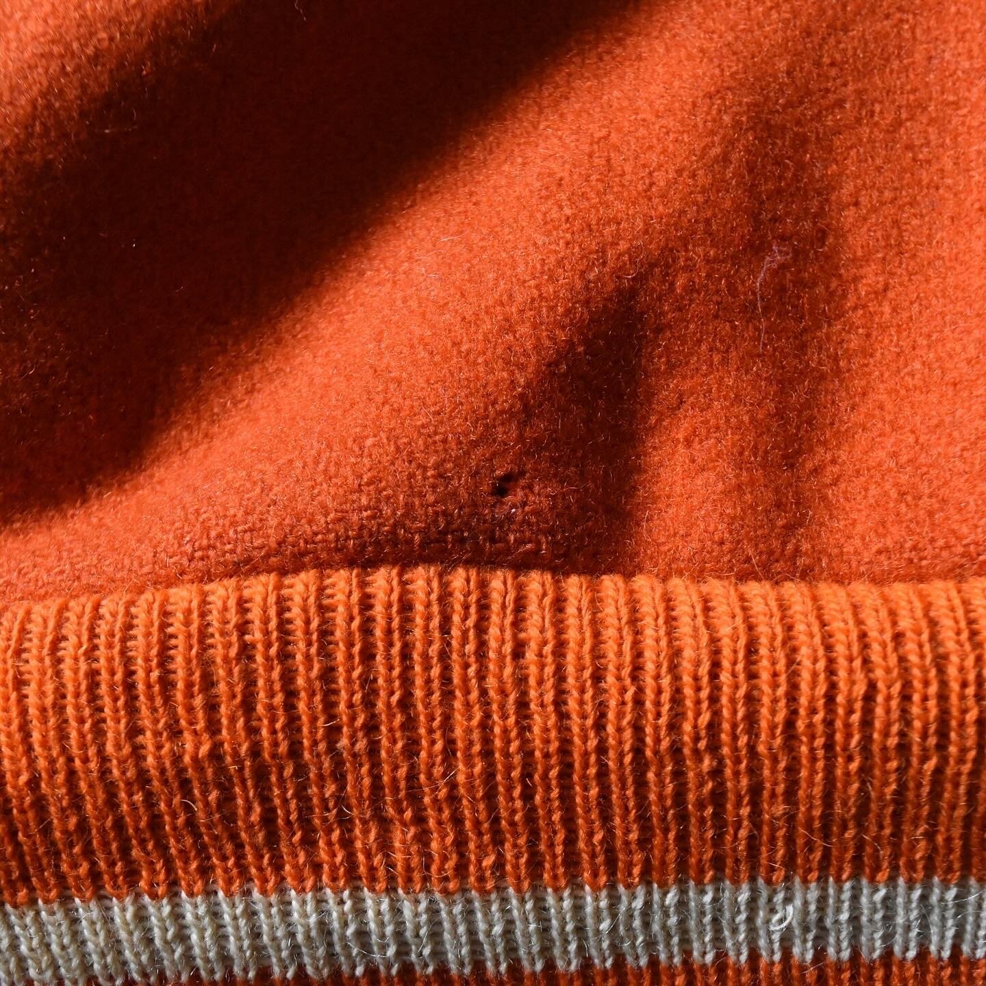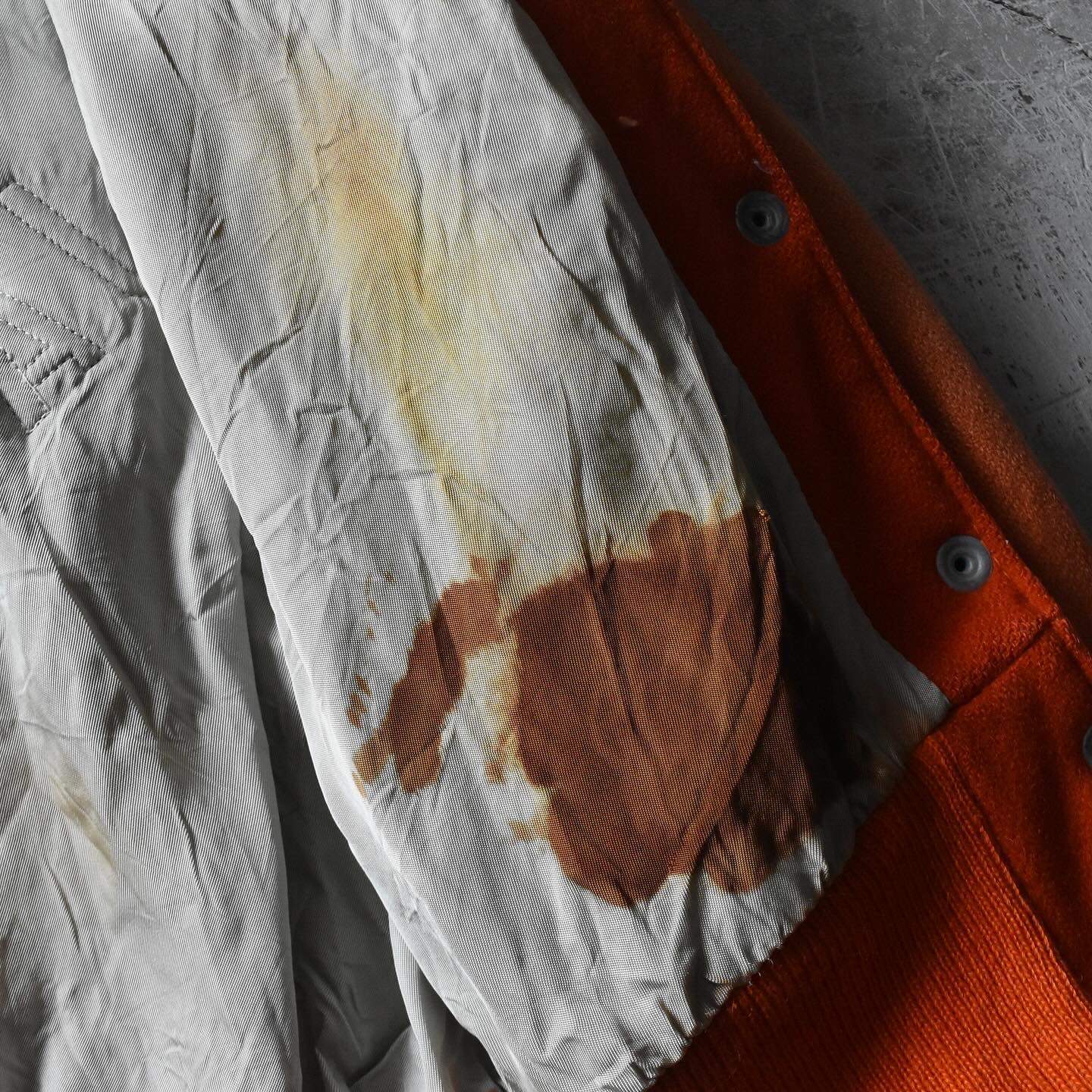 USEDになりますので使用感はございます。襟や両肩から袖にかけて日焼け、裏地の左裾に茶色っぽいインクの様な汚れ、フロント裾に少々汚れ、袖に小さな汚れと小さな虫食い、背中にも小さな虫食いが見られますがコンディションはまずまずです。
