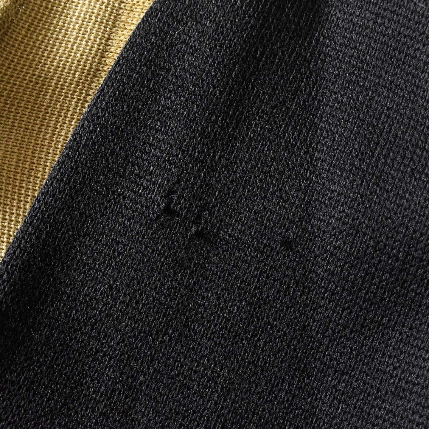 USEDになりますので多少の使用感はございます。首裏付近にホツレ、一番上のボタンに小さな欠けと下から二番目のボタンに付け替え・一番下のボタン欠損、首右横にホツレダメージ、フロント裾や袖・背中に虫食いホツレが見られますがコンディションはまずまずです。