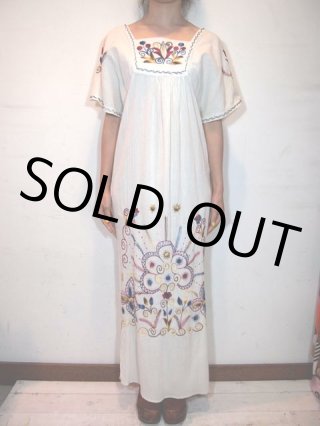 人気のメキシカン刺繍ワンピです。フラワーの刺繍がとてもかわいいです。と手縫い刺繍の温もりが良い雰囲気です。