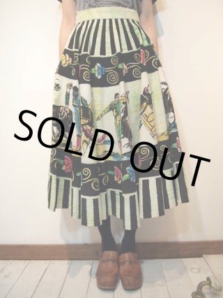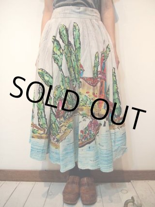 絵画風のメキシカン柄がとてもかわいいです。ウエストは紐が付きますので、多少大きい場合でも着用画像のように結んで調整できます。