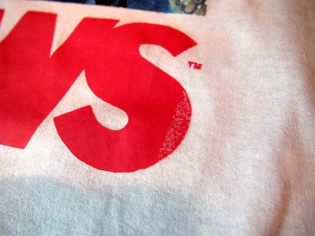 USEDになりますので少々使用感がございます。袖リンガー部分に若干色移り、プリントに少々スレがございますが、コンディションはまずまずです。USEDの為、気付かない小さな汚れやダメージがある場合がございます。