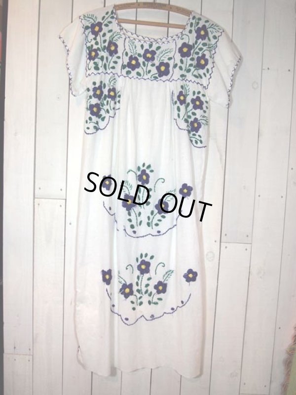 人気のメキシカン刺繍ワンピです。フラワーの刺繍がとてもかわいいです。と手縫い刺繍の温もりが良い雰囲気です。