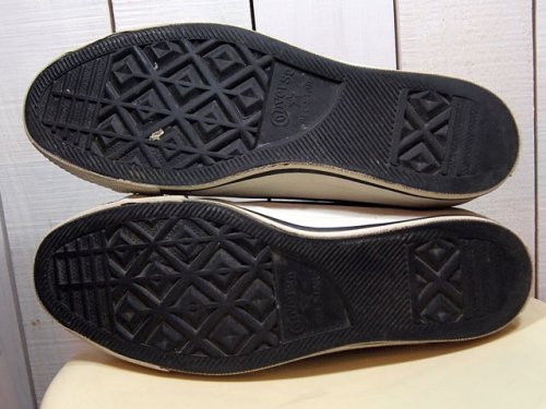 近年80sやチャックテイラーどころか、90年代のUSA生産のコンバースまでも玉数が非常に少なくなってきております。現行品のインドネシアなどのアジア生産のモノはございますが、USA製にこだわりたいという方は多いと思います。こちらは希少な星条旗柄のモノクロです。サイズ・コンディション共に良くオススメです。