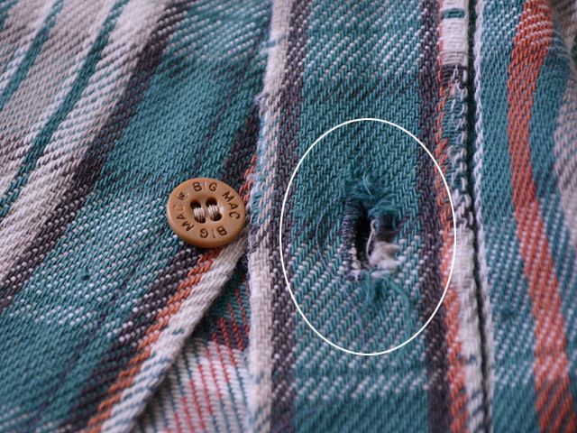 USEDになりますので使用感がございます。襟周りにスレ・ダメージ、右袖に大きなダメージ、左脇腹付近に小さなダメージ、一番下のボタンホールにホツレがございます。雰囲気系ビンテージと言う感覚でピックしたアイテムとなりますのでコンディションの良いものをお探しのお客様はお控え下さい。