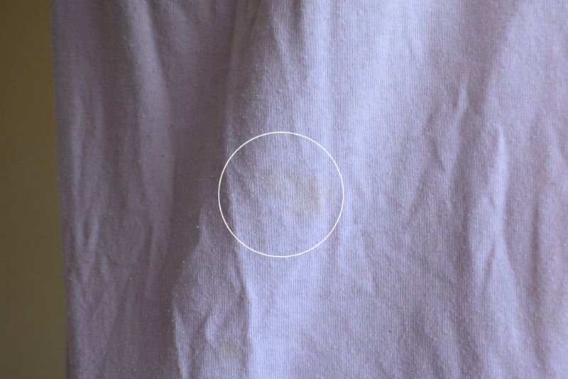 USEDになりますので使用感はございます。右脇腹付近に小さなホツレ、お腹や両脇腹・右胸付近に多少のシミ汚れがございますが、コンディションはまずまずです。