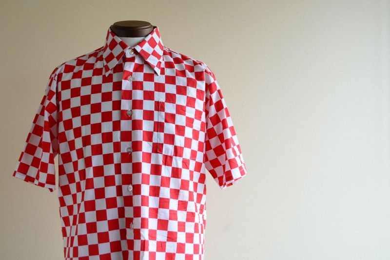70年代製のチェッカーフラッグ半袖シャツです。