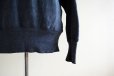 USEDになりますので使用感はございます。ボディには全体的に色褪せ、首周り首リブにダメージ、左肩付近に僅かなホツレ、右袖付け根付近に少々ダメージがございますが、袖リブや裾リブの状態は良く、コンディションはまずまず良好です。