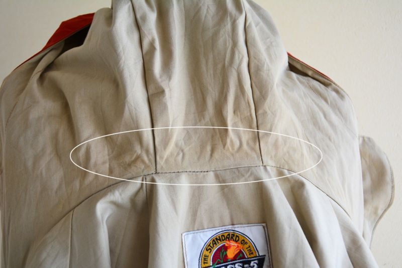 USEDになりますので少々使用感はございます。首後ろに薄っすらシミ汚れ、フロントと左袖口に僅かな汚れがございますがコンディションは良好です。