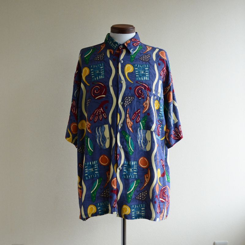 90年代頃のPierre Cardinの総柄レーヨンシャツです。