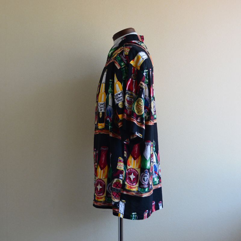 1990s ビール柄 コットンシャツ MADE IN USA 表記L [E21-6-90]