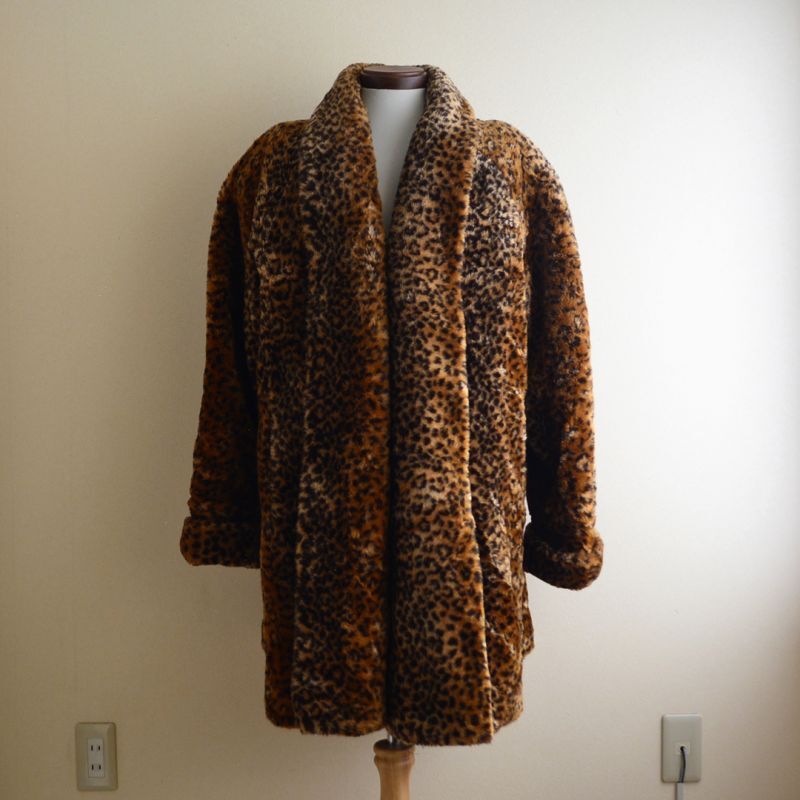 1980s Monterey ヒョウ柄フェイクファーコート MADE IN USA 表記XL [E21-11-60]
