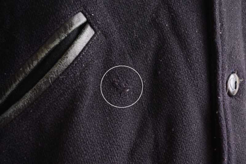 USEDになりますので少々使用感はございます。袖のレザーにはそれなりのスレや傷・ひび割れなどが見られます。袖リブにダメージ、左脇下のハトメが1ヵ所欠損、左ポケット入口に小さな剥がれ、お腹右付近と背中にリペア跡がございますが、年代を考慮しますとコンディションはまずまずかと思います。