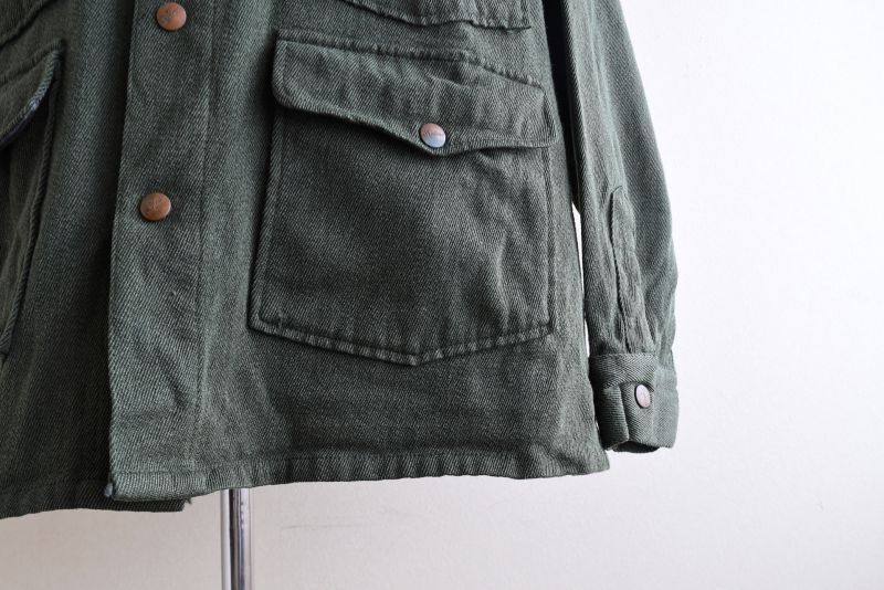 USEDになりますので少々使用感はございます。左肩付近や袖口付近・左サイド裾に僅かな虫食いホツレ、襟に僅かな汚れが見られます。スナップボタンに少々錆が見られ留め外しの際に少々かたく感じられると思いますがコンディションは良好です。
