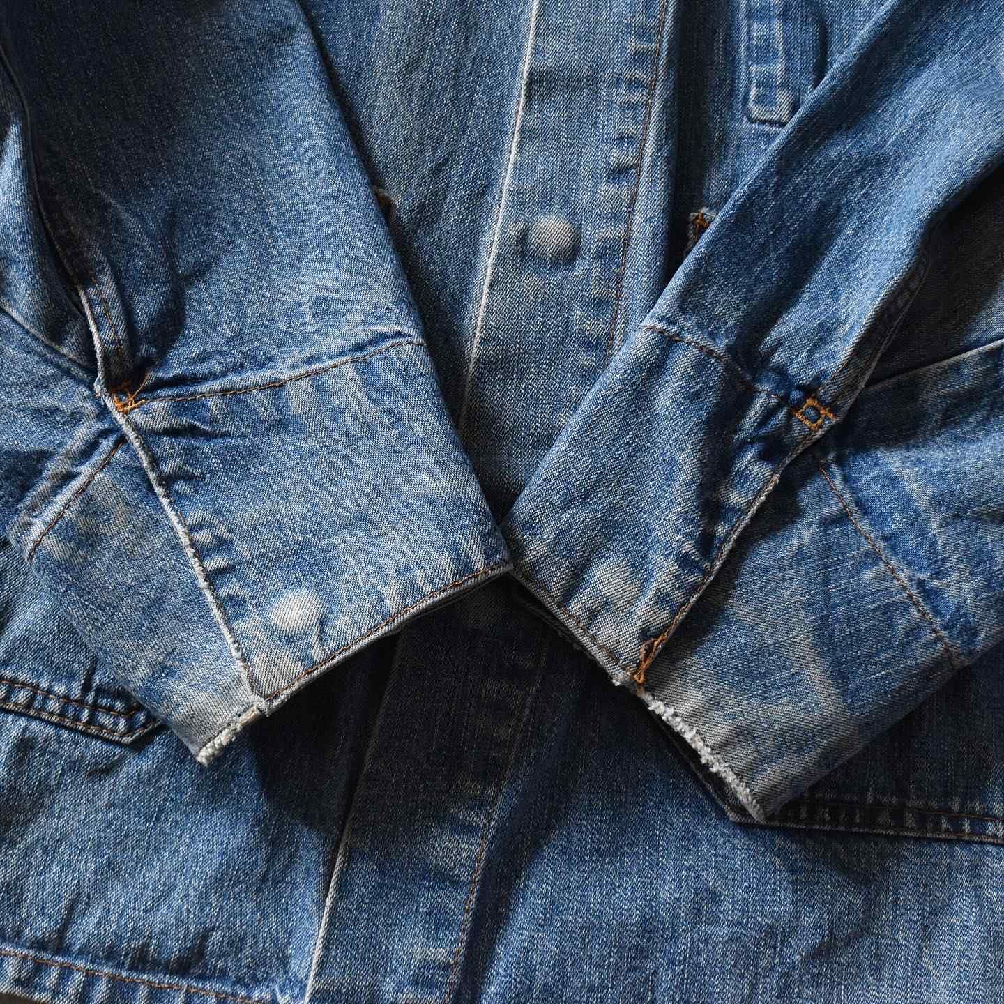 色落ち・デニムの雰囲気もとても良くスナップボタン留めと言うのも新鮮です。