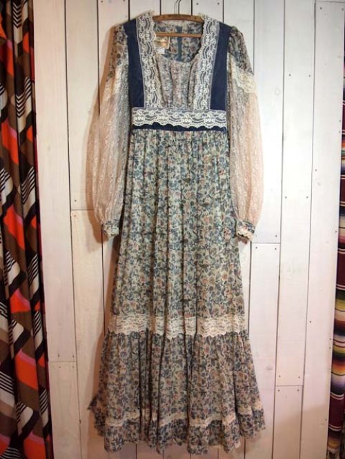 人気のGUNNE SAXです。ベロアとレースの切替、落ち着いた配色の花柄がとてもかわいいです。
